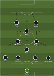And alternatively, here’s how Juve looked with Claudio Marchisio as a more traditional No. 6 at the base of the diamond against Borussia Dortmund that same season.