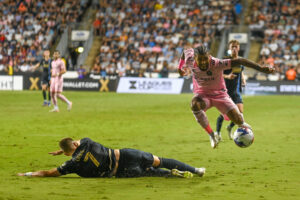 The moment most of the stadium had been waiting for happened in the 20th minute when Lionel Messi scored his only goal of the night. Messi’s shot of 32.1 meters, is his longest shot since joining MLS. Right before the half, Jordi Alba scored and celebrated in front of the Sons of Ben with a heart, kisses, and sucking his thumb.