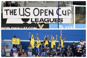 In protest of the Union and other MLS teams not being included in the US Open Cup, a sign in protest is hung in the river end. Fans dressed as bananas also showed up in the River End with a sign saying “Save the Cup but only after the 20:10.” referring to the minute members of the Sons of Ben were going to walk out of the stadium in protest.