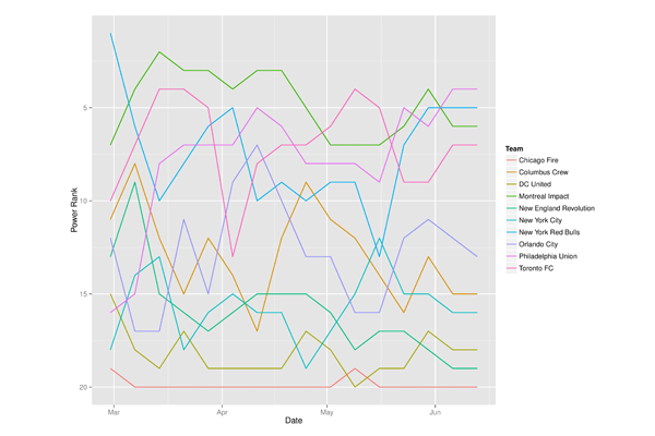 Because of the Copa America break, the focus of the MLS projections is on changes over time.